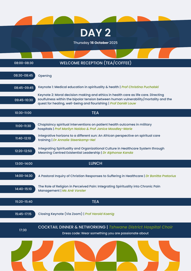 This conference is open to all individuals working in, researching, or interested in the intersection of religion and spirituality in healthcare. Whether you are a healthcare practitioner, theologian, researcher, academic, or student, this event offers valuable insights into the integration of religion and spirituality into healthcare. We also welcome policymakers and healthcare administrators who play a role in shaping healthcare systems and policies. Faith-based organizations, community leaders, and anyone passionate about advancing holistic patient care are encouraged to attend. This is an inclusive space for dialogue, collaboration, and the sharing of innovative ideas to improve healthcare through the integration of religion and spirituality.