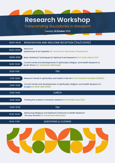 This conference is presented by HospiVision in collaboration with the Department of Practical Theology, University of Pretoria and is made possible through the support of Grant 63219 from the John Templeton Foundation.