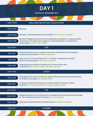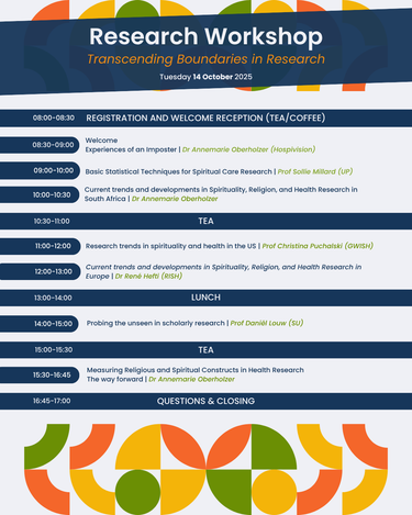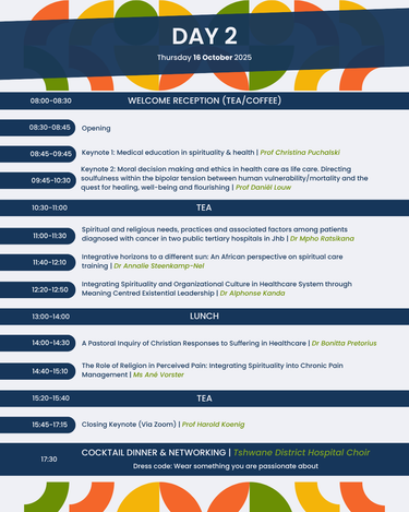 This conference is presented by HospiVision in collaboration with the Department of Practical Theology, University of Pretoria and is made possible through the support of Grant 63219 from the John Templeton Foundation.